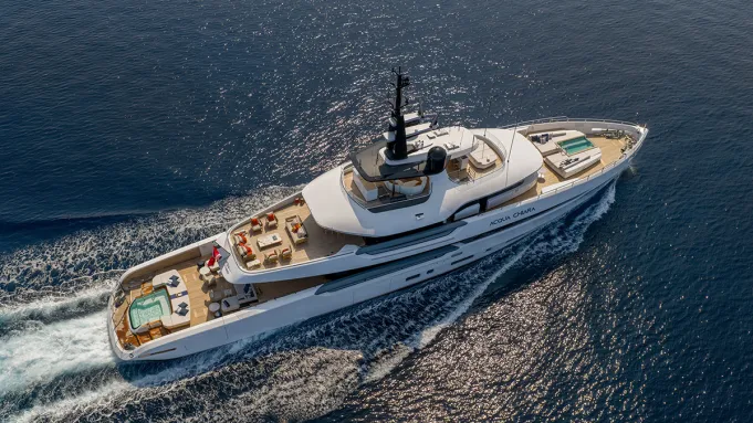 Acqua Chiara is splashy in every sense of the word. The 154-foot superyacht, which Columbus Yachts delivered to an Italian