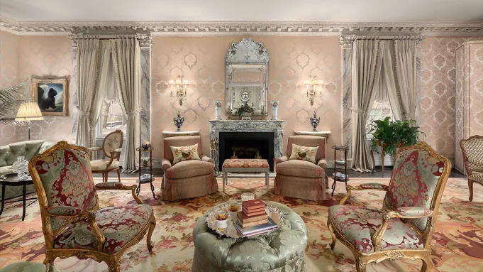 The funnel suite and complementary Loft Suite, a nearly 8,000-square-foot duplex on decks 9 and 10, reflect a broader emphasis on flexible, residential-style layouts. “What can make me feel like I’m on my own private yacht with 12 friends?” Trodd adds. “Being able to connect entire floors with [opening walls of] suites, including the outside decks and balconies.” This ability to jigsaw different-sized accommodations, along with features like a large swimming pool more common on a land-based resort than boat, speaks to the company’s effort to replicate the spatial qualities of its hotels at sea. “We always said we were going to be like a Four Seasons resort, which has a low intensity of space use and the ability to make private spaces,” he says.