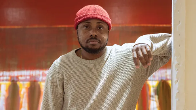 Then he arrives at a part of the building that houses works from his former studio, which went up in flames in 2020. Many pieces were lost entirely, and these rescues—coated in sooty residue—may be beyond salvaging. But like the mythical phoenix, Appah has clearly risen from the ashes. In 2022, he signed with the mega-gallery Pace, and an exhibition of his new work is on view at the New York flagship through February 28.