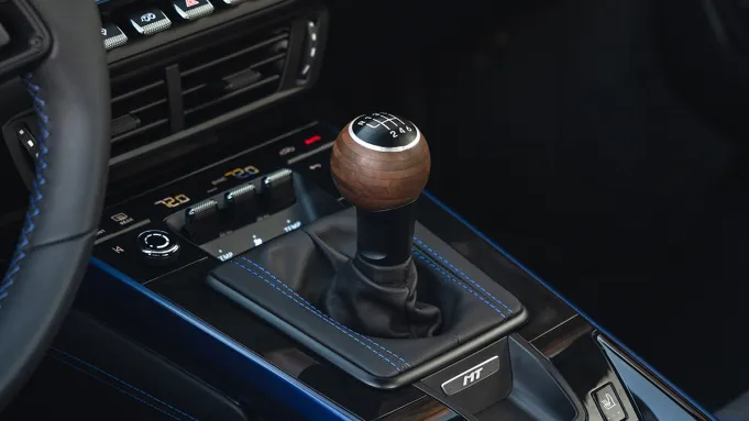 One of two living rooms is warmed by a floor-to-ceiling fireplace.